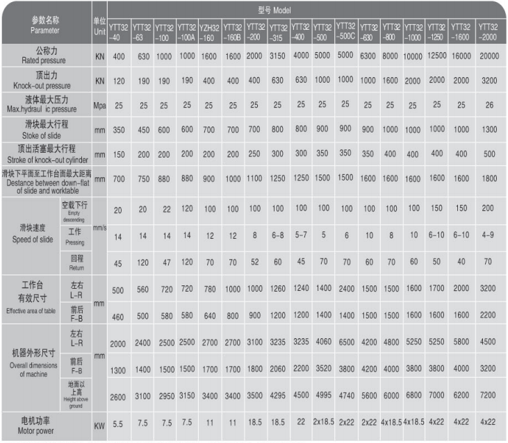 產(chǎn)品介紹:性能特點(diǎn):計(jì)算機(jī)優(yōu)化結(jié)構(gòu)設(shè)計(jì),三梁四柱式結(jié)構(gòu),簡(jiǎn)單、經(jīng)濟(jì)、實(shí)用;液壓控制采用插裝閥集成系統(tǒng),動(dòng)作可靠,使用壽命長(zhǎng),液壓沖擊小,減少了連結(jié)管路與泄漏點(diǎn);獨(dú)立的電氣控制系統(tǒng),工作可靠,動(dòng)作直觀,維修方便;采用按鈕集中控制,具有調(diào)整、半自動(dòng)兩種操作方式;通